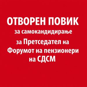 Соопштенија ОТВОРЕН ПОВИК за самокандидирање за Претседател на Форумот на пензионери на СДСМ 26/03/2026 16:31