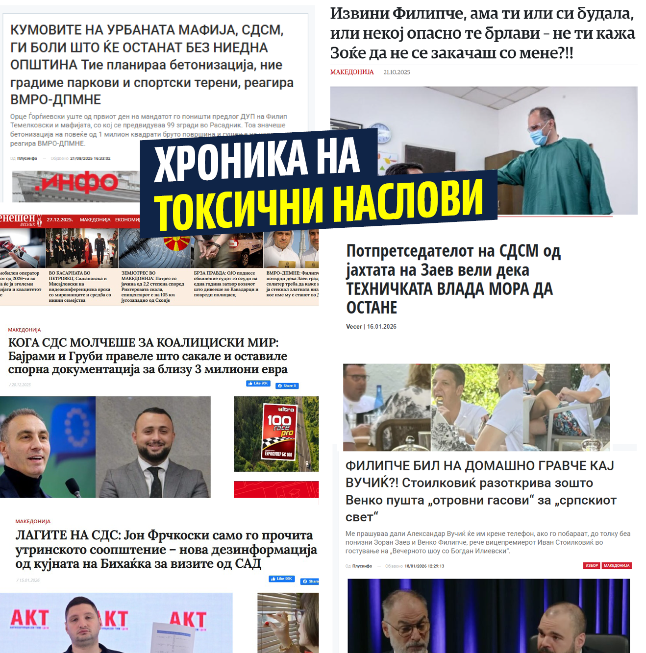 Денес сакавме да ви ги претставиме дел од илјада токсични наслови што успеавме, за ова кратко време, од вчера да ги собереме.